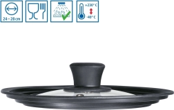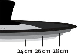 Univerzální poklice je praktickým řešením, pokud vám chybí poklička pro konkrétní nádobí. Jedna poklice dokáže nahradit až tři různé pokličky o průměru 24, 26 nebo 28 cm. Díky průhlednému designu můžete snadno sledovat přípravu jídla.