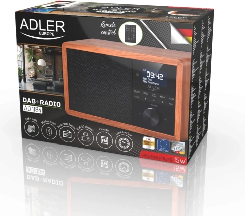 ADLER přináší digitální rádio, které spojuje moderní technologie s klasickým vzhledem. Díky DAB+ a FM/AM přijmu naladíte oblíbené stanice s čistým a stabilním zvukem. Integrované Bluetooth umožní pohodlně streamovat hudbu z telefonu, tabletu či počítače, zatímco jasný LCD displej zobrazuje stanici, čas i nastavení.
