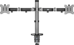 Univerzální kloubový držák pro dva monitory o velikosti 17–32" a hmotnosti až 9 kg na každý monitor. Montáž na okraj stolu nebo do průchodky, kompatibilita VESA 75x75 a 100x100. Nabízí plnou ergonomickou nastavitelnost – výšku, náklon i otočení – pro maximální pohodlí a úsporu místa na pracovním stole.