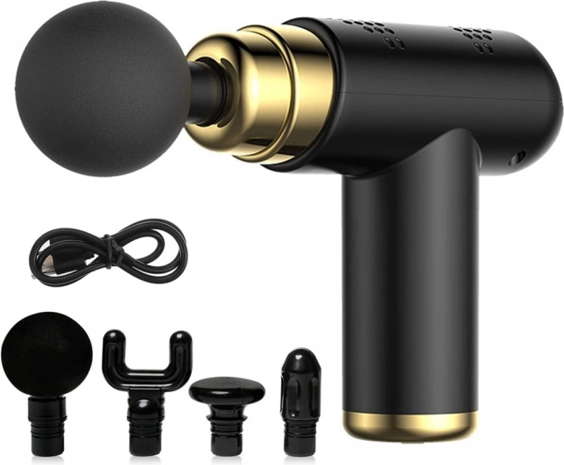 - Masážní pistole, 4 hlavice, USB kabel, originální balení
