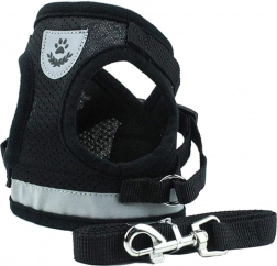 Díky snadnému nastavení popruhů postroj přesně přizpůsobíte tvaru těla mazlíčka. Reflexní prvky zvyšují viditelnost za šera a tmy a spolehlivé uchycení zajišťuje vodítko s kovovou karabinou, které je součástí balení.