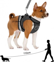Reflexní lem pro lepší viditelnost a bezpečnost. Součástí je odnímatelné vodítko s kovovou karabinou pro jisté připnutí.