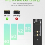 Díky přiloženému kabelu USB‑C a adaptéru USB‑A připojíte pouzdro k široké škále zařízení – od moderních notebooků po stolní PC. Podpora běžných délek M.2 (2230/2242/2260/2280) zaručuje kompatibilitu s většinou NVMe SSD.