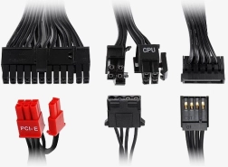 Polomodulární konstrukce a ploché kabely usnadňují čisté vedení kabeláže a lepší airflow ve skříni. Jedna silná větev +12 V (single rail) zajišťuje stabilní napájení i pro náročnější komponenty a dvojice PCIe (PEG) konektorů je připravena pro moderní grafické karty.