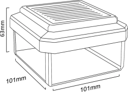 Stylová solární čepice na sloupek o rozměru 100 × 100 mm zajišťuje bezdrátové osvětlení vaší zahrady, plotu či terasy. Díky vestavěnému solárnímu panelu se přes den nabíjí a večer automaticky svítí teplým bílým světlem, čímž zvyšuje bezpečnost a estetiku venkovního prostoru bez potřeby kabeláže.