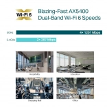 Přístroj podporuje šířku kanálu 160 MHz, což zdvojnásobuje množství dat přenášených na jeden tok prostřednictvím HE160. S funkcí přesného roamingu nejsou přerušovány ani videopřenosy ani hovory, když uživatelé mění polohu. Díky funkci Omada Mesh mohou být přístupové body propojeny bezdrátově, čímž umožňují velké pokrytí sítě a variabilitu v umístění.
