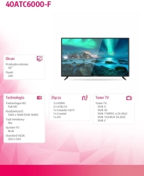 Allview 40ATC6000-F je praktická 40″ LED televize, která přináší vyvážený poměr ceny a výkonu. Hodí se do obývacího pokoje i ložnice a potěší přirozeným podáním barev, solidní ostrostí a stabilním chodem. Díky jednoduchému ovládání a přehlednému rozhraní si rychle vychutnáte filmy, sport i herní konzole.