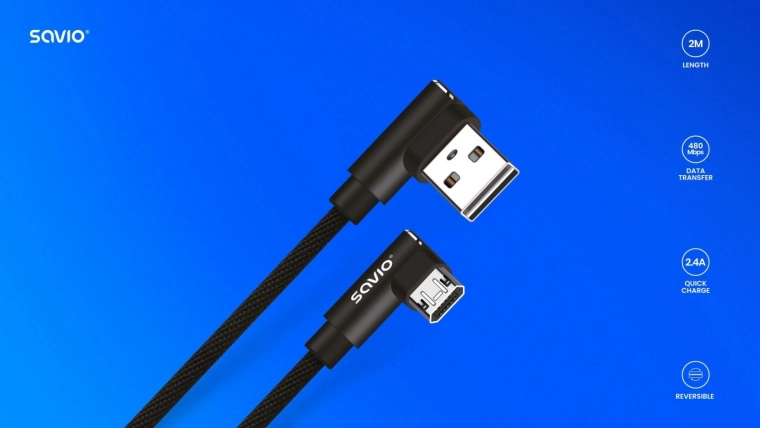 Už žádné hledání správné strany konektoru. Oboustranná technologie u USB A i Micro USB znamená, že kabel zapojíte vždy na první pokus. Úhlová koncovka 90° zvyšuje komfort při hraní, sledování videí nebo chatování během nabíjení.