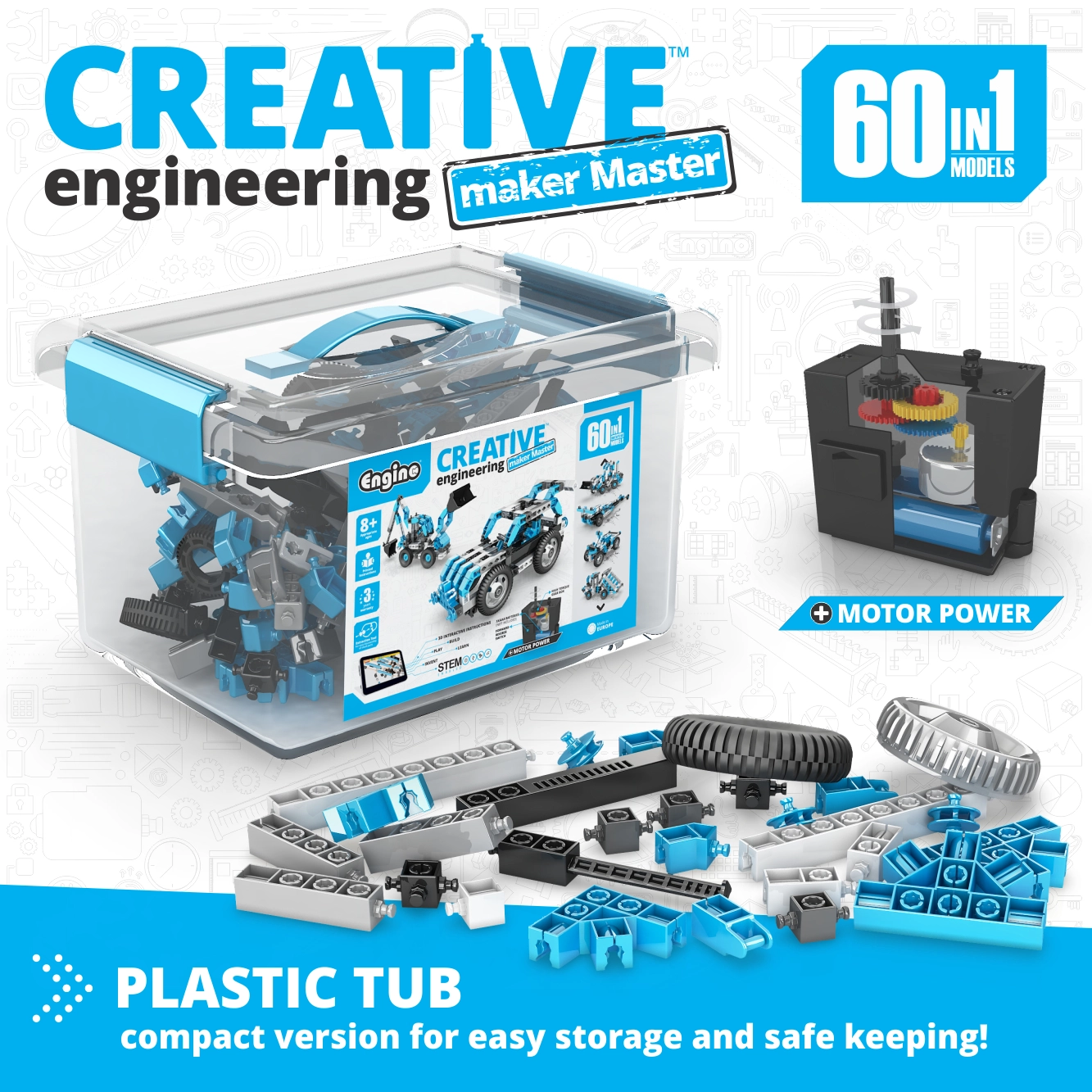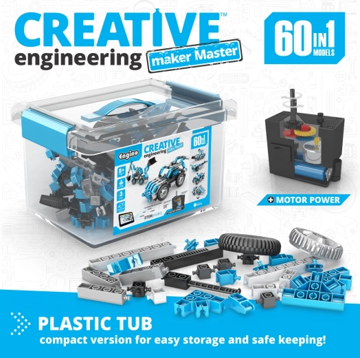 Stavebnice ENGINO Motorized Maker 60 v 1 je ideální volbou pro děti od 8 let, které milují techniku a tvoření. Barevné návody (část tištěná, část online nebo v bezplatné 3D aplikaci) vás provedou stavbou desítek modelů. Díly se snadno nacvakávají a celý set je uložen v praktickém plastovém kufříku pro jednoduché přenášení a skladování.