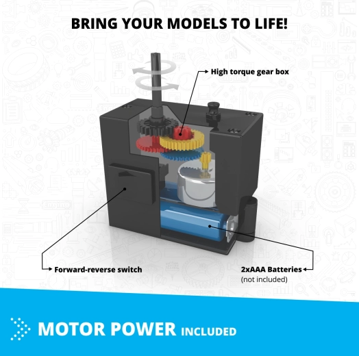 Díky výkonnému motoru s převodovkou a vysokým točivým momentem ožijí vaše modely pohybem. Stavebnice podporuje principy STEM (věda, technologie, technika, matematika) a motivuje děti k experimentování i k tvorbě vlastních konstrukcí.