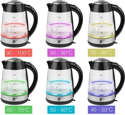 Regulace teploty umožňuje nastavení mezi 40-100 °C, dokonalé pro různé druhy čajů. Měnící se barva osvětlení indikuje nastavenou teplotu a stav ohřevu.
