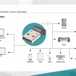 S Bluetooth adaptérem od společnosti DIGITUS můžete využívat vysokorychlostní standard Bluetooth 5.0, který umožňuje rychlý a kvalitní přenos dat, fotografií nebo hudby. Zařízení je kompatibilní s mobilními zařízeními, dokáže propojit dva počítače a připojit různá příslušenství jako ovladače, sluchátka, reproduktory, klávesnice, myši, tiskárny, tablety nebo smartphony. Adaptér podporuje dualní režim, LAN funkce a sériové porty (SPP). Dosah Bluetooth je 10 až 20 metrů dle podmínek. Díky funkci BLE je spotřeba energie přizpůsobena aktuálním potřebám.
