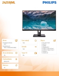 Monitor Philips 23,8" je navržen pro produktivitu i pohodlí. Panel VA zajišťuje hlubokou černou, živé barvy a skvělou čitelnost textu. Díky ergonomickému stojanu s nastavením výšky, náklonu a funkcí pivot rychle přepnete z režimu na šířku do režimu na výšku pro práci s dokumenty či kódem.