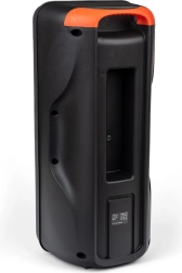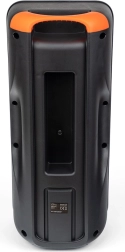 Promyšlená konstrukce obsahuje přední panel s ovládacími tlačítky, porty pro různá připojení a praktickou rukojeť pro snadné přenášení. Balení obsahuje i nabíjecí kabel a kabel AUX.