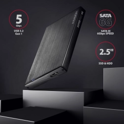 Pouzdro AXAGON EE25-XA6 ALINEbox je koncipováno pro tvrdé disky SATA 2,5" nebo SSD s podporou rozhraní USB 3.2 Gen 1. Díky podpoře UASP a funkce TRIM chrání a optimalizuje výkon SSD disků dlouhodobě. Nejen, že si udržíte elegantní styl díky designu odolnému vůči otiskům prstů, ale také získáte spolehlivou ochranu a chlazení díky hliníkové konstrukci.