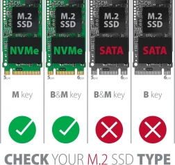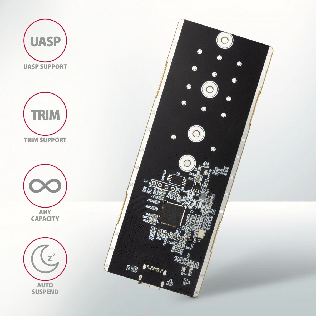 Skříňka je vybavena žebrováním a teplovodivými podložkami, které efektivně chladí vložený disk SSD M.2 a zvyšují tak jeho životnost. Skříň po stranách chrání SSD, s ochranou proti přehřátí, která snižuje riziko "Thermal Throttling".