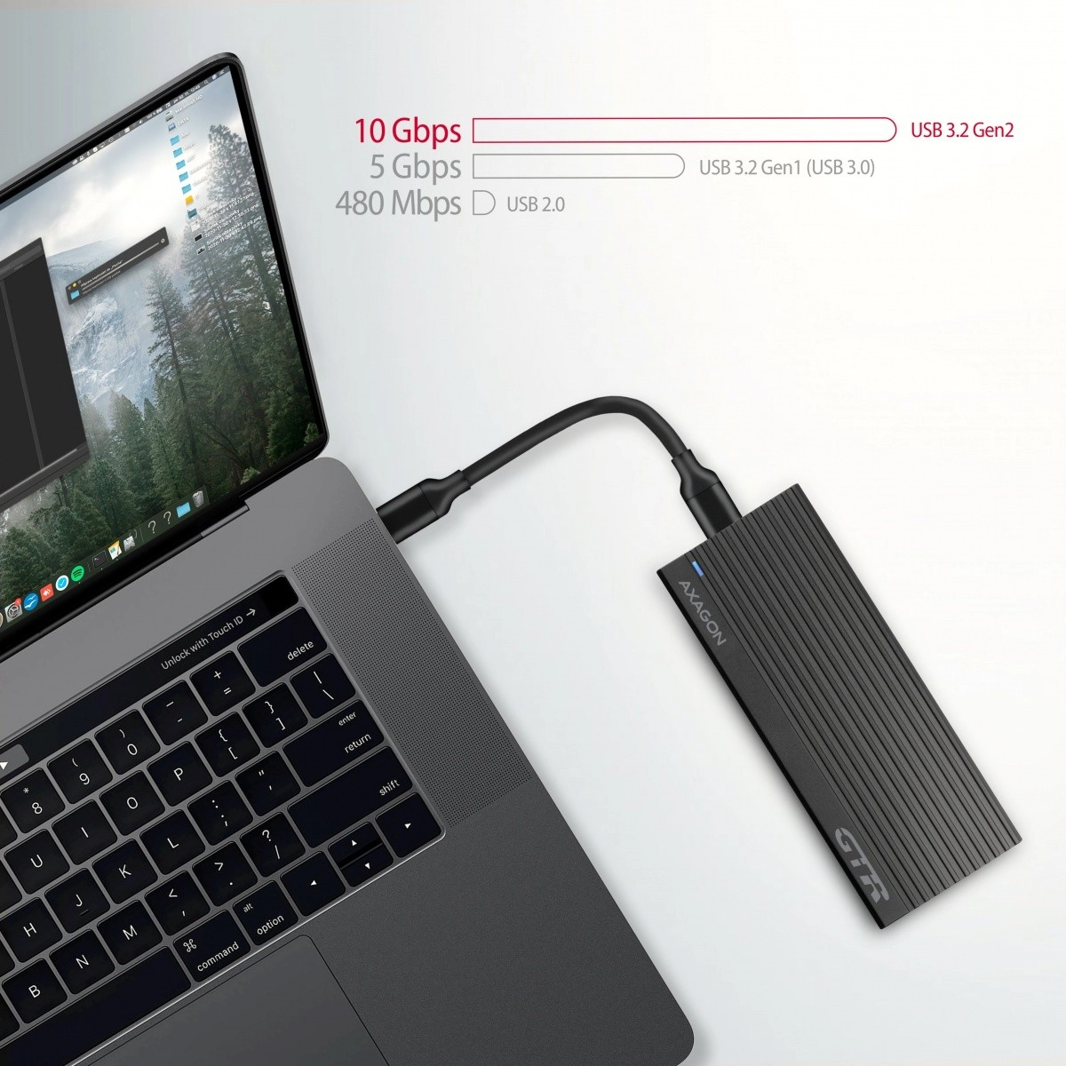 Tento hliníkový externí box AXAGON pro M.2 NVMe SSD je ideální pro superrychlé přenosy dat. Díky dvoustrannému USB-C portu a přiloženému kabelu USB-C -> USB-C mohou uživatelé snadno připojit svůj SSD k počítači, telefonu nebo tabletu.