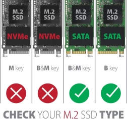 Můžete použít disky M.2 o délkách 42, 60 a 80 mm. Disky mohou být jednostranné i dvoustranné a neexistuje omezení kapacity disku SSD. Bezšroubové otvírání obalu usnadňuje proces instalace a výměny disků.