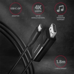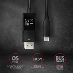Aktivní kabel AXAGON USB‑C na DisplayPort snadno propojí notebook, počítač nebo telefon s monitorem, TV či projektorem. Nabízí rozlišení až 4K/60 Hz, standard DisplayPort 1.2, délku 1,8 m a spolehlivý přenos obrazu i zvuku. Instalace je plug & play, převod je jednosměrný (USB‑C → DP) a vyžaduje zařízení s DP Alt Mode nebo Thunderbolt 3.