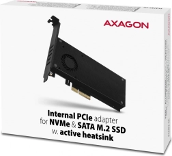 Kovový kryt s ventilátorem a přiložený hliníkový pasivní chladič s teplovodivými podložkami snižují teploty až o 35 °C a eliminují thermal throttling.