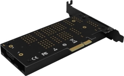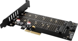 Jeden slot pro NVMe (M‑key) a druhý pro SATA (B‑key) vám umožní kombinovat rychlé NVMe a cenově výhodné SATA SSD a provozovat je současně bez omezení.