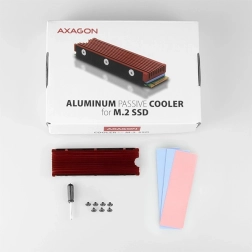 Pasivní chladič AXAGON pro SSD M.2 2280 účinně snižuje teploty až o 25 °C díky hliníkovému žebrování. Univerzální řešení pro jednostranné i oboustranné disky, kompatibilní se SATA i NVMe. V balení jsou tři silikonové termopodložky pro perfektní dosed a jednoduchá montáž.
