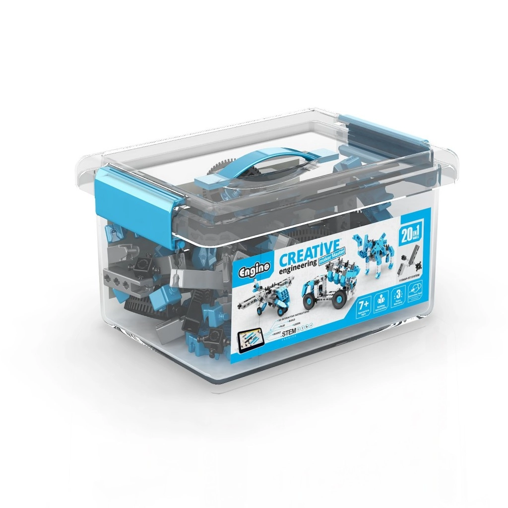Objevte kreativní stavebnici ENGINO, se kterou děti od 7 let postaví až 20 různých modelů – od motorky, vrtulníku a letadla přes pracovní stroje až po roboty a zvířata. Díly v modro‑bílo‑černé kombinaci jsou uloženy v praktickém průhledném boxu s rukojetí. Interaktivní aplikace Engino kidCAD nabízí 3D návody, které rozvíjí logické myšlení, jemnou motoriku a STEM dovednosti.