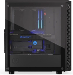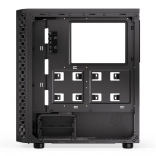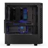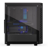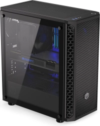Bočnice z tvrzeného skla dává vyniknout vašemu hardwaru a podsvícení. Uvnitř je místo pro až 4× 2,5" disky (nebo 2× 2,5" + 2× 3,5"), grafické karty do 325 mm a vzduchové chladiče CPU do 161 mm. Podpora kapalinového chlazení až 360 mm vpředu a 240 mm nahoře dává volnou ruku výkonným i tichým stavbám.