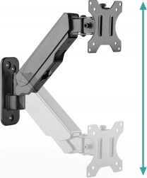 Maximalizujte prostor a zlepšete ergonomii se spolehlivým nástěnným ramenem pro ploché i zakřivené monitory. Integrovaná plynová pružina zajišťuje plynulé a lehké nastavování výšky až o 28 cm, takže monitor snadno přizpůsobíte své výšce i poloze sezení.