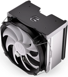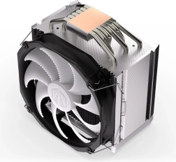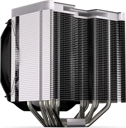 Šest masivních heatpipe a precizně opracovaná základna efektivně odvádějí teplo přímo z procesoru. Ventilátor s vlnitými hranami lopatek snižuje psychoakustický šum a nabízí volitelný semi‑passive chod pro absolutní ticho v nízké zátěži.