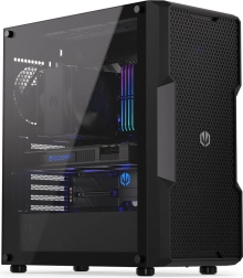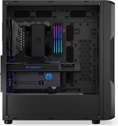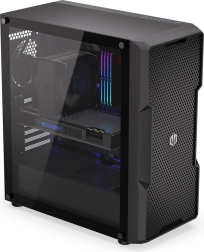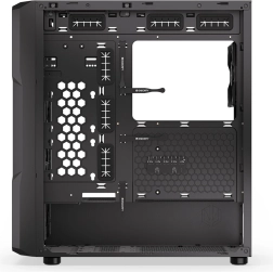 Díky velkorysému prostoru snadno osadíte E‑ATX základní desku, grafickou kartu až 360 mm a zdroj do 275 mm. Pro úložiště máte flexibilní možnosti: 2× 3.5" + 2× 2.5" nebo 4× 2.5". Boční panel z temperovaného skla elegantně ukáže RGB prvky i čisté vedení kabelů.