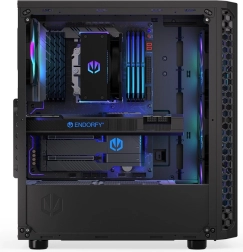Díky promyšlenému vnitřnímu uspořádání snadno osadíte dlouhé grafické karty, výkonné chlazení i více disků. Integrovaný ARGB kontrolér (se splitterem) vám umožní sladit světelné efekty s ostatními produkty Endorfy.