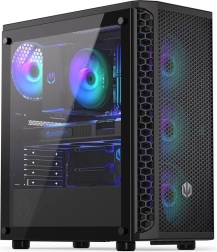 Endorfy Signum 300 ARGB je vzdušná a stylová skříň pro hráče i tvůrce, kteří chtějí kompaktní rozměry bez kompromisů. Mesh čelo a čtyři přibalené Stratus 120 PWM ARGB ventilátory zajišťují efektivní chlazení, zatímco bočnice z tvrzeného skla nechá vyniknout komponentům i podsvícení.
