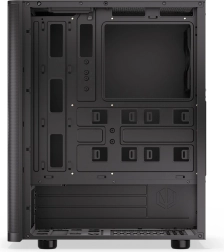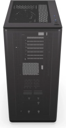 Do skříně pohodlně nainstalujete základní desku ATX, úložiště až pro 3× 2,5" (nebo 1× 3,5" + 2× 2,5") a výkonné chlazení: vpředu až radiátor 360 mm, nahoře radiátor 240 mm. Pro vzduchové chlazení je připraveno až 7 pozic pro ventilátory – jeden kvalitní Stratus 120 PWM je součástí balení.