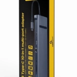 Adaptér 10v1 USB-C je skvělým řešením pro rozšíření portů vašeho zařízení. Obsahuje HDMI, VGA, USB, LAN a další potřebné funkce v jedné kompaktní jednotce.