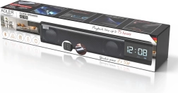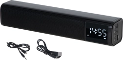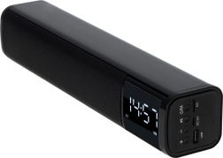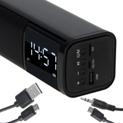 Hledáte kompaktní řešení na pracovní stůl nebo noční stolek? Tento víceúčelový reproduktor v provedení soundbar nabízí čistý a vyvážený zvuk, přehledné LED hodiny a praktický budík. Streamujte hudbu bezdrátově přes Bluetooth 5.0 nebo využijte přehrávání z USB a SD karty. Pro kabelové zdroje je k dispozici vstup AUX.