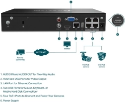 Pro pohodlnou práci nechybí živý náhled až 4 kanálů, rychlé přehrávání a vyhledávání událostí na časové ose. Díky dvoucestnému audiu můžete vést interkomové hovory přímo přes připojenou kameru. Šířka pásma pro video 80 Mb/s umožňuje obsloužit více kamer ve vysokém rozlišení.