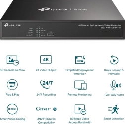 VIGI NVR1004H-4P je kompaktní NVR pro 4 IP kamery, který kombinuje vysokou kvalitu obrazu a jednoduché nasazení. Díky 4K HDMI výstupu a dekódování až 16 MP získáte ostrý přehled z více úhlů. Integrované PoE+ porty napájí a připojí kamery jedním kabelem, což zrychlí instalaci a sníží náklady.