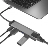 Nabízí dva USB 3.0 typ A, HDMI s podporou 4K a RJ-45, který zajišťuje vysokorychlostní internetové připojení.