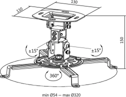Nastavitelná ramena pokrývají rozteče od 54 do 320 mm (Ø), takže držák snadno přizpůsobíte většině projektorů různých značek a velikostí.