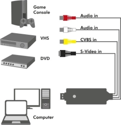 Uchovejte své vzpomínky v digitální podobě. Tento kompaktní usb audio/video grabber umožní pohodlně převést záznamy z kamery nebo videorekordéru do počítače. Díky rozhraní USB 2.0 je připojení rychlé a instalace snadná.