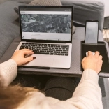 Robustní pracovní deska se zarážkou na spodní hraně drží notebook bezpečně na místě i při naklonění. Ideální pro práci v posteli či na pohovce.