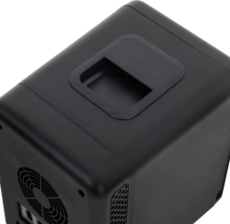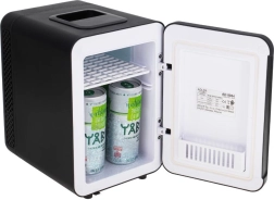 Lehká mini lednička s praktickou rukojetí se snadno přenáší mezi domovem, kanceláří a autem. Minimalistický design v černé barvě se hodí do každého prostoru.