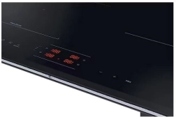 Indukční varná deska Samsung je navržena pro moderní kuchyně s flexibilní strefou Flex Zone, která umožňuje vaření různého nádobí současně díky širokému obdélníkovému prostoru. Funkce Wi-Fi konektivity zajišťuje pohodlí a umožňuje sledování desky odkudkoliv pomocí aplikace SmartThings App. Deska je navíc vybavena funkcí auto propojení s digestoří, která se automaticky zapíná při používání desky.