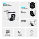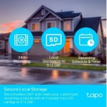 Instalujte ji pomocí dostupných možností montáže na zeď, strop nebo sloup. Video lze ukládat na microSD kartu o kapacitě až 512 GB nebo do cloudového úložiště Tapo Care. Kamera podporuje obousměrný zvuk pro snadnou komunikaci a disponuje fyzickým režimem soukromí pro zakrytí objektivu.
