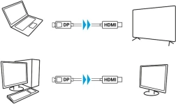 Upozornění: Kabel je jednosměrný a přenáší signál pouze z DisplayPort (zdroj) do HDMI (displej), tj. DP → HDMI.