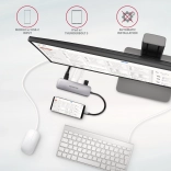 Tento hub nabízí tři USB porty se standardními USB-A konektory. Umožňuje permanentní podporu několika externích disků. Díky rychlému USB 3.2 Gen 1 rozhraní je přenos dat podporován rychlostí až 5 Gb/s. Hub rovněž nabízí funkci nabíjení telefonů a tabletů s proudem až 1.5 A / 5 V.