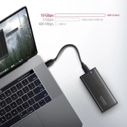 Skříňka AXAGON je vybavena moderním USB-C konektorem pro spolehlivé připojení a je dodávána s kabelem USB-C -> USB-C a adaptérem USB-C -> USB-A. Díky tomu ji můžete snadno připojit k notebooku, počítači nebo dokonce mobilnímu zařízení.