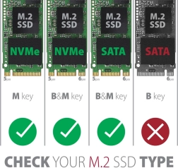 Bezšroubová konstrukce z černého hliníku s ventilací zajišťuje optimální chlazení a prodlužuje životnost disku. Vhodná je pro všechny velikosti disků SSD M.2: 2242, 2260 a 2280 mm. Tento produkt je skvělou volbou pro ty, kteří hledají stylové a efektivní řešení pro ukládání a přenášení dat.