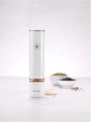 Elektrický mlýnek na koření ZWILLING ENFINIGY v elegantní bílé barvě kombinuje praktičnost a moderní design. Trvanlivý keramický mlecí mechanismus vyniká vysokou tvrdostí a odolností proti opotřebení, takže z čerstvě mletého koření uvolníte maximum vůně i chuti. Hrubost mletí jednoduše přizpůsobíte díky plynulému nastavení.